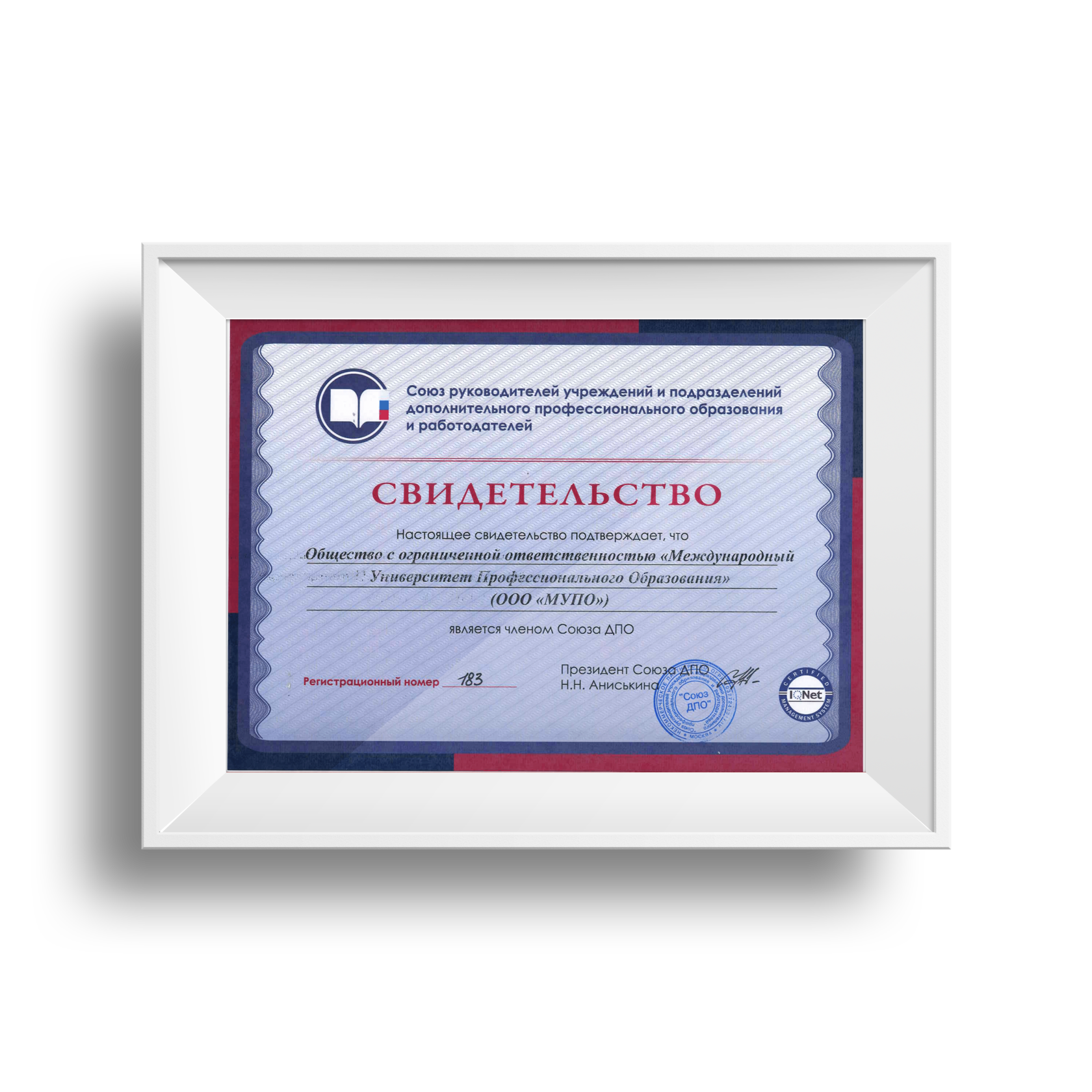 Общество с ограниченной ответственностью "Международный Университет Профессионального Образования" предоставляет образовательные услуги в сфере дополнительного профессионального образования профессиональной переподготовки и повышения квалификации по программам: