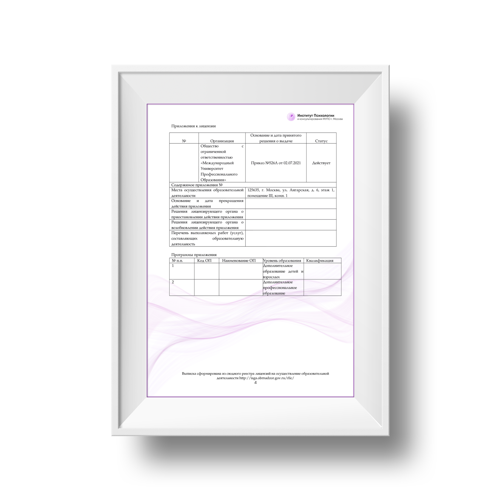 - программе дополнительного профессионального образования профессиональной переподготовки «Предоставление психологических услуг в сфере сексуальных отношений».